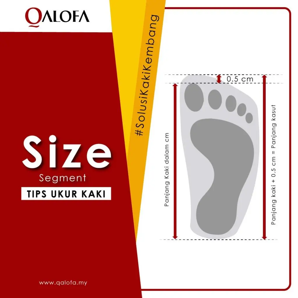 Sebenarnya saiz kasut-kasut koleksi Qalofa mengikut standard saiz kasut di Malaysia. Jadi jangan risau, korang boleh guna sukatan di bawah ya!